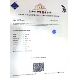 DATE:2025REF.NO:LN 1606NAME:BLUE SAPPHIREWEIGHT:5.25 CTSCOLOUR:BLUETYPE OF/CUT:OVALDIMENSION:10-6.10-1.6-2.CONCLUSION:N/AHARDNESS:9.0R.INDEX:1.76-1.78CLARITY:N/ASPECIFIC COMMENTS:BLUE SAPPHI..