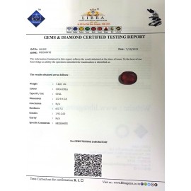 REPORT NO . LH 128CLARITY . N/ACOLOUR . COCA COLASHAPE / CUT . OVALWT . 3.88 CTSDIMENSION . 1-3.8-5.4-2.R . INDEX . 1.92-2.02HARDNESS . 6.5-7.5COMMENT . HESSONITE..