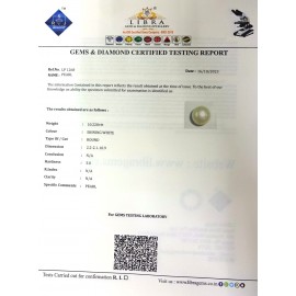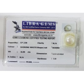 REPORT NO . LP 238CLARITY . N/ACOLOUR . SHINING WHITESHAPE / CUT . ROUNDWT . 8.09 CTSDIMENSION . 1-5.1-5.8-4.R . INDEX . N/AHARDNESS . 3.0COMMENT . PEARL..