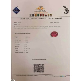 REPORT NO . LRB 2CLARITY . N/ACOLOUR . PINKSHAPE / CUT . OVALWT . 4.11 CTSDIMENSION . 9-9.8-5.5-6.R . INDEX . 1.76-1.78HARDNESS . 9.0COMMENT . BURMA RUBY { MAYANMAR }..
