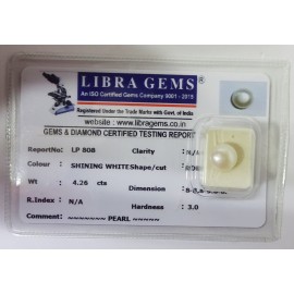 REPORT NO . LP 808CLARITY . N/ACOLOUR . SHINING WHITESHAPE / CUT . ROUNDWT . 4.26 CTSDIMENSION . 8-8.8-9.6-8.R . INDEX . N/AHARDNESS . 3.0COMMENT . PEARL..