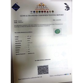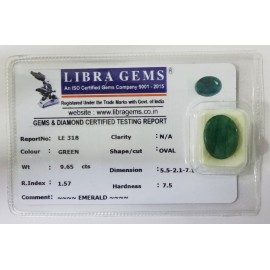 REPORT NO . LE 89CLARITY . N/ACOLOUR . GREENSHAPE / CUT . OVALWT . 3.10 CTSDIMENSION . 10-8.8-5.4-9.R . INDEX . 1.57HARDNESS . 7.5COMMENT . EMERALD..
