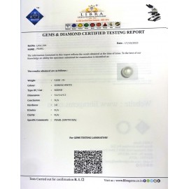 REPORT.NO.LP 1157CLARITY.N/A COLOUR.SHINING WHITE SHAPE/CUT.ROUND WT.5.70 CTS DIMENSION.10.3-10.3-7.1R.INDEX.N/AHARDNESS.3.0COMMENT.PEARL ..