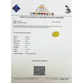 REPORT.NO.-LY 431CLARITY.-N/ACOLOUR.-YELLOWSHAPE/CUT.-OVALWT.-7.56 CTSDIMENSION.-2-4.9-2.6-6.R.INDEX.-1.76-1.78HARDNESS.-9.0COMMENT.-YELLOW SAPPHIRE..