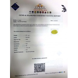 REPORT NO . LY 245CLARITY . N/ACOLOUR . YELLOWSHAPE / CUT . OVALWT . 5.31 CTSDIMENSION . 1-5.8-9.5-1.R . INDEX . 1.76-1.78HARDNESS . 9.0COMMENT . YELLOW SAPPHIRE..