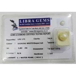 REPORT NO . LPS 175CLARITY . N/ACOLOUR . SHINING WHITESHAPE / CUT . ROUNDWT . 5.82 CTSDIMENSION . 9-2.9-1.8-8.R . INDEX . N/AHARDNESS . 3.0COMMENT . C / WATER PEARL { SOSI }..