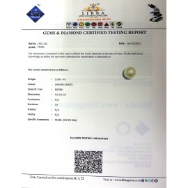 REPORT.NO.LP 1144CLARITY.N/A COLOUR.SHINING WHITE SHAPE/CUT.ROUND WT.5.97DIMENSION.10.2-10.2-7.8R.INDEX.N/AHARDNESS.3.0COMMENT.PEARL ..