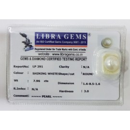 REPORT NO . LP 291CLARITY . N/ACOLOUR . SHINING WHITESHAPE / CUT . ROUNDWT . 7.96 CTSDIMENSION . 1-6.8-5.1-6.R . INDEX . N/AHARDNESS . 3.0COMMENT . PEARL..