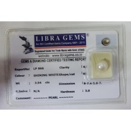 REPORT NO . LP 866CLARITY . N/ACOLOUR . SHINING WHITESHAPE / CUT . ROUNDWT . 3.94 CTSDIMENSION . 8-7.6-5.8-7.R . INDEX . N/AHARDNESS . 3.0COMMENT . PEARL..