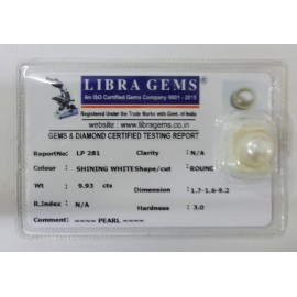 REPORT NO . LP 281CLARITY . N/ACOLOUR . SHINING WHITESHAPE / CUT . ROUNDWT . 9.93 CTSDIMENSION . 1-7.1-6.9-2.R . INDEX . N/AHARDNESS . 3.0COMMENT . PEARL..
