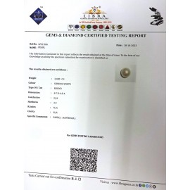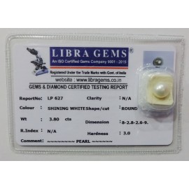 REPORT NO . LP 627CLARITY . N/ACOLOUR . SHINING WHITESHAPE / CUT . ROUNDWT . 3.80 CTSDIMENSION . 8-2.8-2.6-9.R . INDEX . N/AHARDNESS . 3.0COMMENT . PEARL..