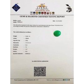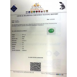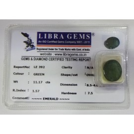 REPORT.NO.LE 392CLARITY.N/ACOLOUR.GREENSHAPE/CUT.OVALWT.11.17 CTSDIMENSION.8-5.4-9.2-8.R.INDEX.1.57HARDNESS.7.5COMMENT.EMERALD..
