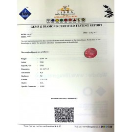 REPORT NO . LRA 41CLARITY . N/ACOLOUR . PINKSHAPE / CUT . OVALWT . 6.80 CTSDIMENSION . 2-1.9-8.6-5.R . INDEX . 1.76-1.78HARDNESS . 9.0COMMENT . RUBY { A }..