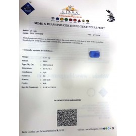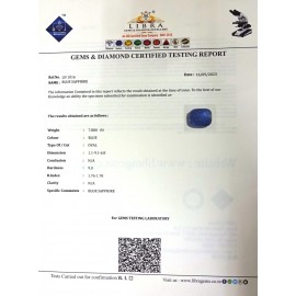 REPORT.NO.LN 481CLARITY.N/ACOLOUR.BLUESHAPE/CUT.OVAL WT.6.25 CTSDIMENSION.1.9-10.1-4.9R.INDEX.1.76-1.78HARDNESS.9.0COMMENT.BLUE SAPPHIRE ..