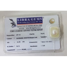 REPORT NO . LP 11CLARITY . N/ACOLOUR . SHINING WHITESHAPE / CUT . ROUNDWT . 6.25 CTSDIMENSION . 10-1.7-5.10-1R . INDEX . N/AHARDNESS . 3.0COMMENT . PEARL..