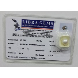 REPORT NO . LP 712CLARITY . N/ACOLOUR . SHINING WHITESHAPE /CUT . ROUNDWT . 3.95 CTSDIMENSION .8-1.8-1.7-5.R . INDEX . N/AHARDNESS . 3.0COMMENT . PEARL..