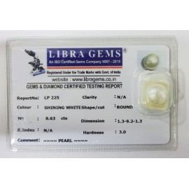 REPORT NO . LP 225CLARITY . N/ACOLOUR . SHINING WHITESHAPE / CUT . ROUNDWT . 8.63 CTSDIMENSION . 1-3.9-2.1-3.R . INDEX . N/AHARDNESS . 3.0COMMENT . PEARL..