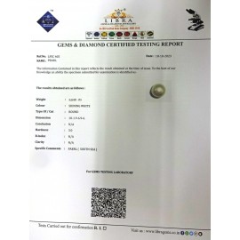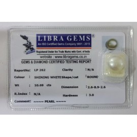REPORT NO . LP 262CLARITY . N/ACOLOUR . SHINING WHITESHAPE / CUT . ROUNDWT . 10.69 CTSDIMENSION . 2-6.8-9.2-6.R . INDEX . N/AHARDNESS . 3.0COMMENT . PEARL..