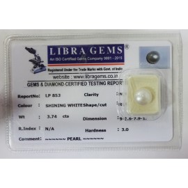 REPORT NO . LP 853CLARITY . N/ACOLOUR . SHINING WHITESHAPE / CUT . ROUNDWT . 3.74 CTSDIMENSION . 9-1.6-7.9-1.R . INDEX . N/AHARDNESS . 3.0COMMENT . PEARL..