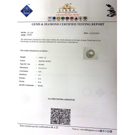 DATE:16-10-2023REF.NO:LP 1254NAME:PEARLWEIGHT:5.03 CTS COLOUR:SHINING WHITETYPE OF/CUT:ROUNDDIMENSION:9.6-9.6-6.6CONCLUSION:N/AHARDNESS:3.0R.INDEX:N/ACLARITY:N/ASPECIFIC COMMENTS:PEARL..
