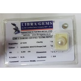 REPORT NO . LP 835CLARITY . N/ACOLOUR . SHINING WHITESHAPE / CUT . ROUNDWT . 6.90 CTSDIMENSION . 1-1.7-1.1-1.R . INDEX . N/AHARDNESS . 3.0COMMENT . PEARL..