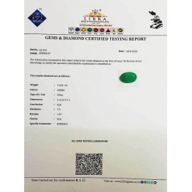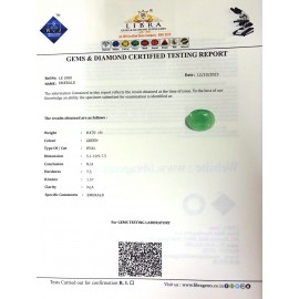 REPORT.NO.-LE 516CLARITY.-N/ACOLOUR.-GREENSHAPE/CUT.-OVALWT.-4.84 CTSDIMENSION.-3-2.9-9.5-3.R.INDEX.-1.57HARDNESS.-7.5COMMENT.-EMERALD..