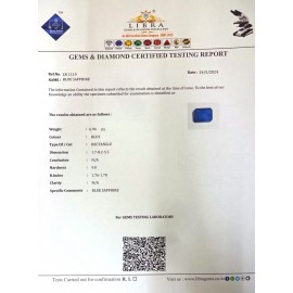 DATE:23-5-2024REF.NO:LN 1061NAME:BLUE SAPPHIREWEIGHT:6.58 CTSCOLOUR:BLUE TYPE OF/CUT:RECTANGLEDIMENSION:4.1-6.7-5.5CONCLUSION:N/AHARDNESS:9.0R.INDEX:1.76-1.78CLARITY:N/ASPECIFIC COMMENT..