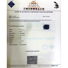 REPORT.NO.LN 858CLARITY.N/ACOLOUR.BLUESHAPE/CUT.RECTANGLEWT.7.85 CTSDIMENSION.10.6-9.4-6.3R.INDEX.1.76-1.78HARDNESS.9.0COMMENT.BLUE SAPPHIRE..