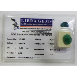 REPORT.NO.LE 441CLARITY.N/ACOLOUR.GREENSHAPE/CUT.OVALWT.4.26 CTSDIMENSION. 4-9.2-1.9-1.R.INDEX.1.57HARDNESS.7.5COMMENT.EMERALD..