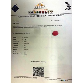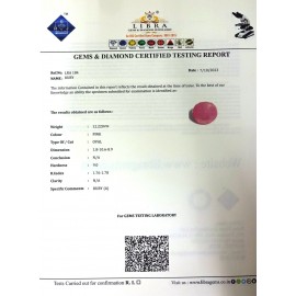 REPORT.NO.-LR 320CLARITY.-N/ACOLOUR.-PINKSHAPE/CUT.-OVALWT.-2.59 CTSDIMENSION.-10.4-8.1-3.1R.INDEX.-1.76-1.78HARDNESS.-9.0COMMENT.-RUBY..