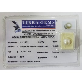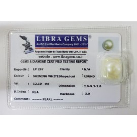 REPORT NO . LP 1101CLARITY . N/ACOLOUR . SHINING WHITESHAPE / CUT . ROUNDWT . 4.28 CTSDIMENSION . 8-9.9-1.7-3.R . INDEX . N/AHARDNESS . 3.0COMMENT . PEARL..