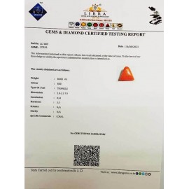 DATE:18-8-2023REF.NO:LCI 889NAME:CORALWEIGHT:8.00 CTSCOLOUR:REDTYPE OF/CUT:TRIANGLEDIMENSION:2-8.3-1.7-9.CONCLUSION:N/AHARDNESS:3.5R.INDEX:N/ACLARITY:N/ASPECIFIC COMMENTS: CORAL..