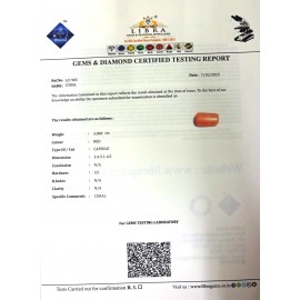 REPORT.NO.LCI 553CLARITY.N/ACOLOUR.REDSHAPE/CUT.CAPSULEWT.7.02 CTS DIMENSION.8.1-7.2-6.2R.INDEX.N/AHARDNESS.3.5COMMENT.CORAL ..