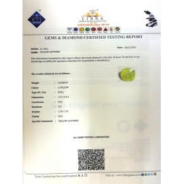 REPORT.NO.LY 521CLARITY.N/ACOLOUR.YELLOW SHAPE/CUT.OVALWT.4.79 CTSDIMENSION.2.3-1.1-3.2R.INDEX.1.76-1.78HARDNESS.9.0COMMENT.YELLOW SAPPHIRE ..