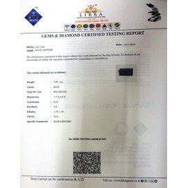 REPORT.NO.LN 408CLARITY.N/ACOLOUR.BLUE SHAPE/CUT.SQUARE WT.6.23 CTSDIMENSION.9.6-9.7-5.3R.INDEX.1.76-1.78HARDNESS.9.0COMMENT.BLUE SAPPHIRE ..