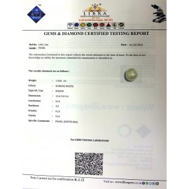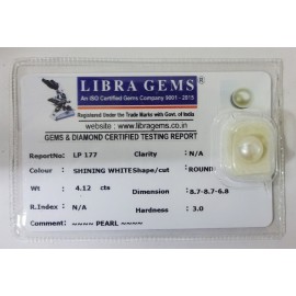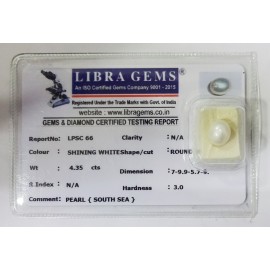 REPORT NO . LPSC 66CLARITY . N/ACOLOUR . SHINING WHITESHAPE / CUT . ROUNDWT . 4.35 CTSDIMENSION . 7-9.9-5.7-9.R . INDEX . N/AHARDNESS . 3.0COMMENT . PEARL { SOUTH SEA }..