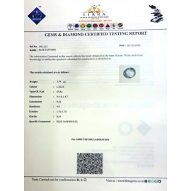 REPORT.NO.LN 510CLARITY.N/ACOLOUR.BLUESHAPE/CUT.OVAL WT.3.27 CTSDIMENSION.10.7-7.9-4.3R.INDEX.1.76-1.78HARDNESS.9.0COMMENT.BLUE SAPPHIRE ..