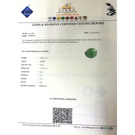 REPORT NO . LE 21CLARITY . N/ACOLOUR . GREENSHAPE / CUT . OVALWT . 3.27 CTSR . INDEX . 1.57HARDNESS . 7.5COMMENT . EMERALD..