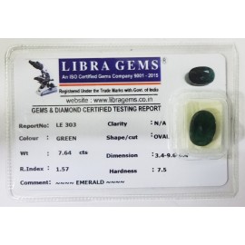 REPORT.NO.-LE 303CLARITY.-N/ACOLOUR.-GREENSHAPE/CUT.-OVALWT.-7.64 CTSDIMENSION.-3.4-9.6-7.4R.INDEX.-1..57HARDNESS.-7.5COMMENT.-EMERALD..