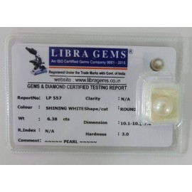 REPORT NO . LP 557CLARITY . N/ACOLOUR . SHINING WHITESHAPE / CUT . ROUNDWT . 6.38 CTSDIMENSION . 10-1.10-1.7-4.R . INDEX . N/AHARDNESS . 3.0COMMENT . PEARL..