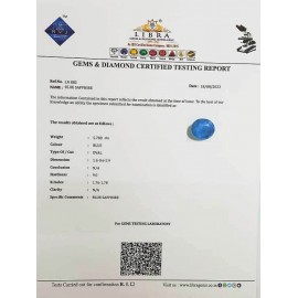 REPORT.NO.LNA 83CLARITY.N/ACOLOUR.BLUE SHAPE/CUT.OVALWT.6.19 CTSDIMENSION.1.7-9.2-5.9R.INDEX.1.76-1.78HARDNESS.9.0COMMENT.BLUE SAPPHIRE {A}..