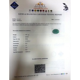 REPORT.NO.LE 360CLARITY.N/ACOLOUR.GREENSHAPE/CUT.OVALWT.5.74 CTSDIMENSION. 6-4.2-4.10-1.R.INDEX.1.57HARDNESS.7.5COMMENT.EMERALD..