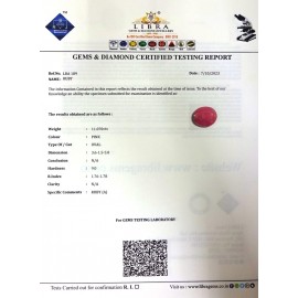 REPORT.NO.-LR 527CLARITY.-N/ACOLOUR.-PINKSHAPE/CUT.-OVALWT.-9.27 CTSDIMENSION.-3-3.10-8.6-8.R.INDEX.-1.76-1.78HARDNESS.-9.0COMMENT.-RUBY..