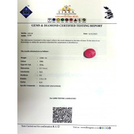 DATE:6-12-2023REF.NO:LRB 58NAME:RUBYWEIGHT:2.96 CTSCOLOUR:PINKTYPE OF/CUT:OVALDIMENSION:9.7-7.8-4.1CONCLUSION:N/AHARDNESS:9.0R.INDEX:1.76-1.78CLARITY:N/ASPECIFIC COMMENTS:BURMA RUBY {MAYANMA..