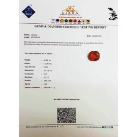 REPORT NO . LH 1CLARITY . N/ACOLOUR . COCA COLASHAPE / CUT . OVALWT . 6.40 CTSDIMENSION . 2-8.10-8.5-3.R . INDEX . 1.92-2.02HARDNESS . 6.5-7.5COMMENT . HESSONITE..