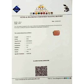REPORT.NO.-LRM 2CLARITY.-N/ACOLOUR.-PINKSHAPE/CUT.-OVALWT.-3.60 CTSDIMENSION.-10-2.7-4.4-8.R.INDEX.-1.76-1.78HARDNESS.-9.0COMMENT.-RUBY { M }..
