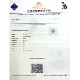 REPORT NO . LP 108CLARITY . N/ACOLOUR . SHINING WHITESHAPE / CUT . ROUNDWT . 5.84 CTSDIMENSION . 10-1.10-1.7-2.R . INDEX . N/AHARDNESS . 3.0COMMENT . PEARL..