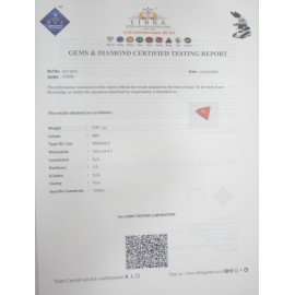 REPORT NO . LCI 102CLARITY . N/ACOLOUR . REDSHAPE / CUT . TRIANGLEWT . 3.58 CTSDIMENSION . 1-3.10-8.5-1.R . INDEX . N/AHARDNESS . 3.5COMMENT . CORAL..