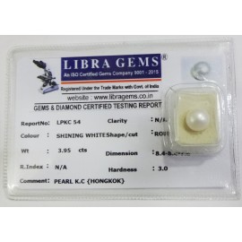 REPORT.NO.-LPKC 54CLARITY.-N/ACOLOUR.-SHINING WHITESHAPE/CUT.-ROUNDWT.-3.95 CTSDIMENSION.-8-4.8-4.7-6.R.INDEX.-N/AHARDNESS.-3.0COMMENT.- PEARL K.C { HONGKOK }..