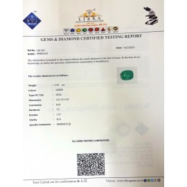 REPORT.NO.-LE 528CLARITY.-N/ACOLOUR.-GREENSHAPE/CUT.-OVALWT.-3.36 CTSDIMENSION.-1-8.9-1.4-2.R.INDEX.-1.57HARDNESS.-7.5COMMENT.-EMERALD..